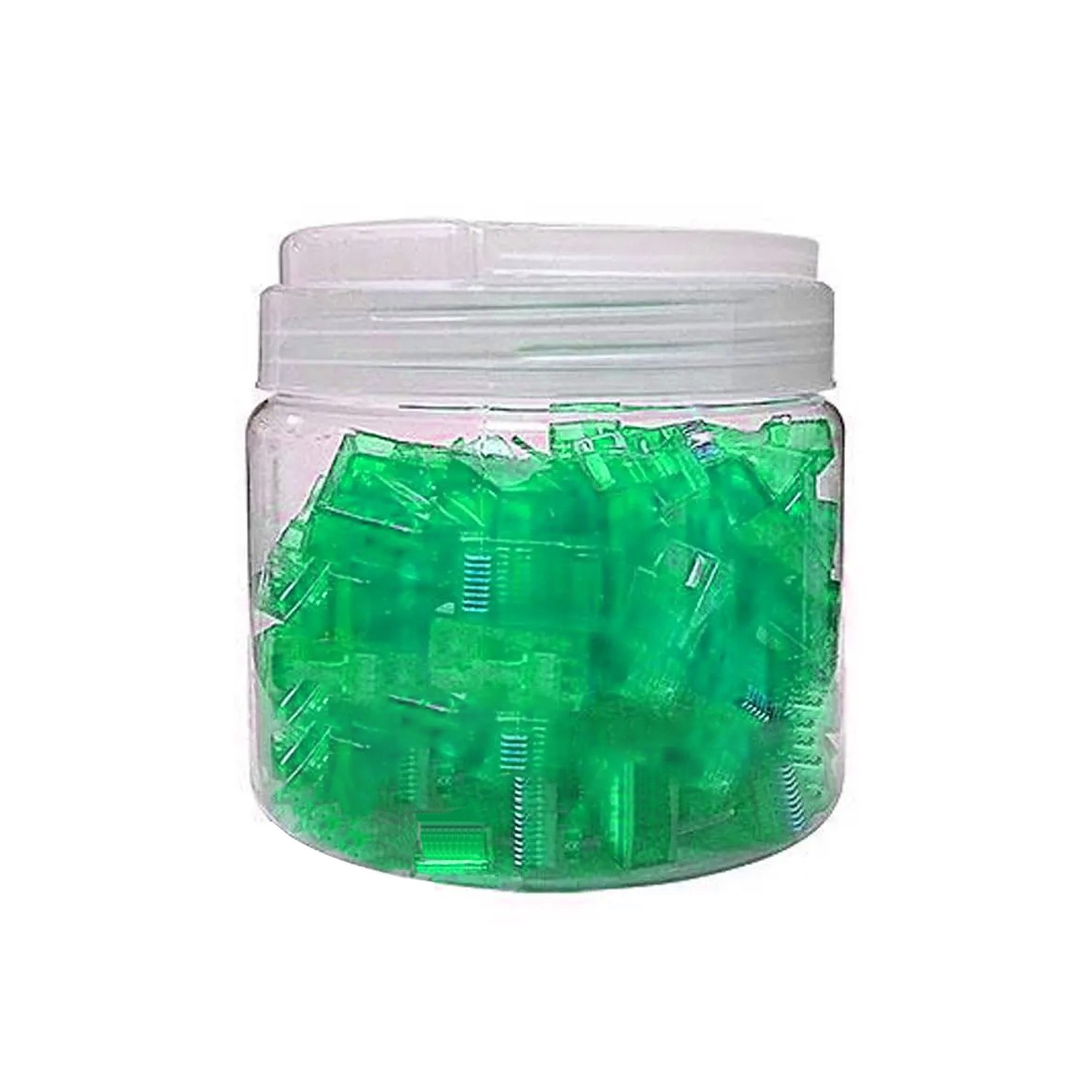 Tarro con 100 unidades de conectores RJ45 CAT5E verde