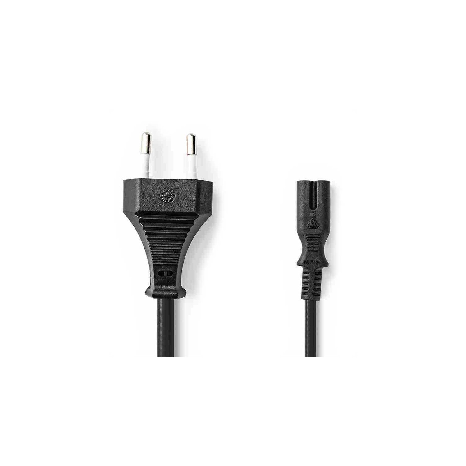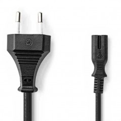 Tipo de conector: IEC-320-C7 em uma extremidade e plugue padrão (geralmente Schuko ou NEMA) na outra extremidade para conectar à fonte de alimentação.